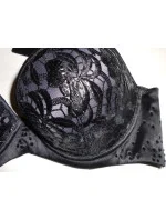 Podprsenka P86-1238C - Pleasure State, vyztužená s lesklou krajkou na hladkém černém podkladu, obvod podprsenky je hladký, zdobený malými kamínky - Swarovski elements, ramínka taktéž.