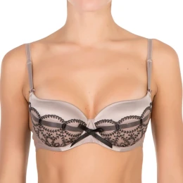 Dámská push-up podprsenka s tenkými posouvacími ramínky, vzadu zapínání na dva háčky.