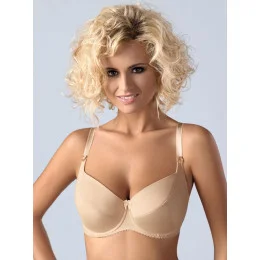 Luxusní polovyztužená podprsenka Gaia 081 s kosticí vyrobená z části z lesklého mikrovlákna. Vnitřek košíčků je vyztužen měkkou pěnovou hmotou a podložen bavlněným úpletem. Ramínka jsou pevná, elastická, lehce nastavitelná.