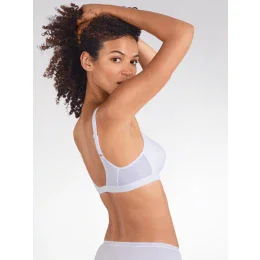 Měkká pohodlná podprsenka bez kostic a bez výztuže. Dvojité moldované košíčky z příjemné mikrofáze. Síťková vsadka v podpaždí slouží lepšímu odvětrávání. Velmi příjemný a pohodlný střih, vhodný nejen pro sport, ale také pro pracovní aktivity, kde dáváte přednost pohodlí.
