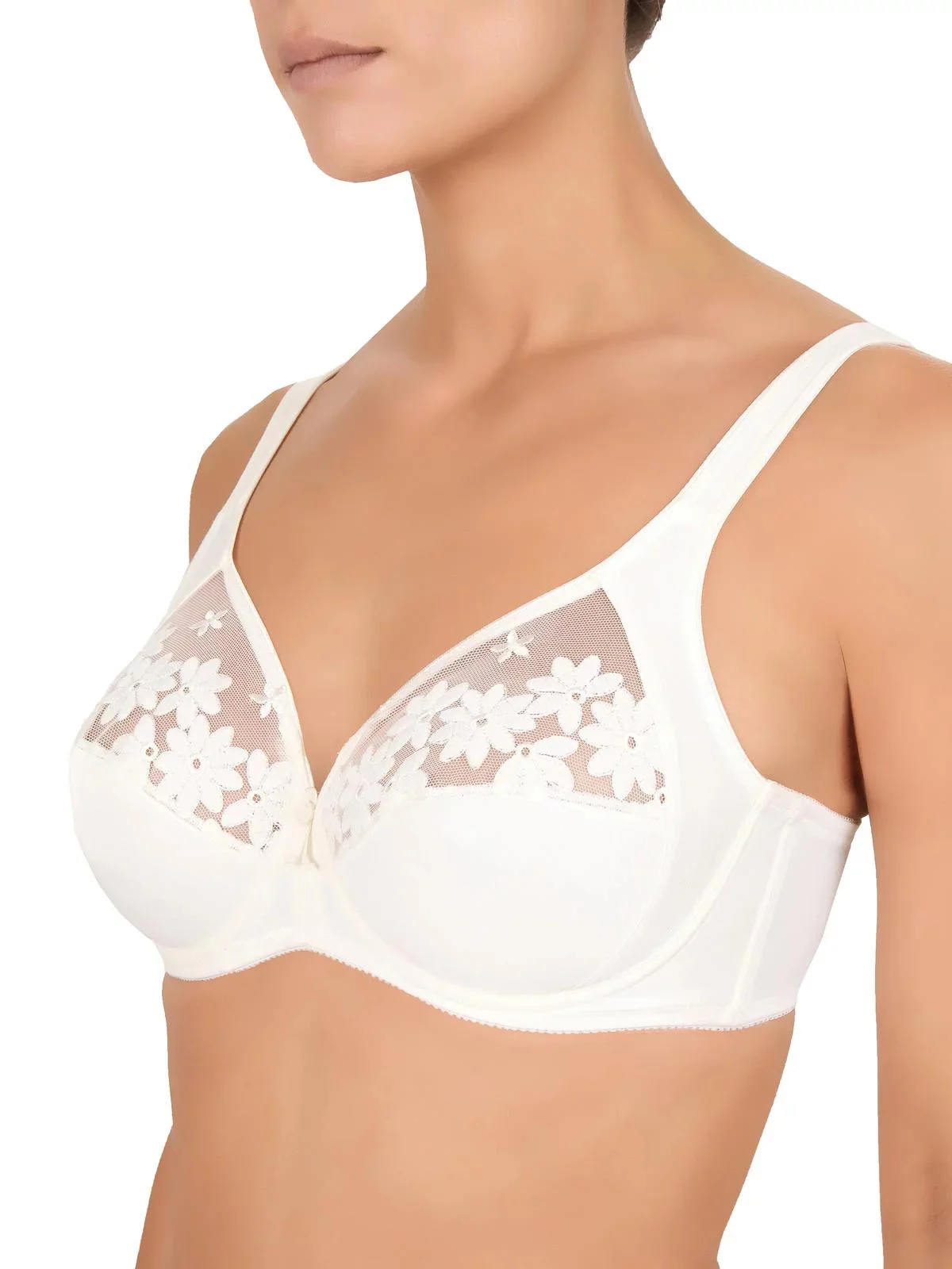 Inovovaný elastický materiál Lycra Soft-Micro s bavlnou, florální švýcarská tylová krajka. Podprsenka s kosticí.