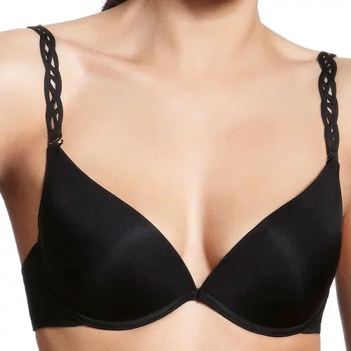 Fantastická push-up podprsenka pro hluboký výstřih. Tato série je vyrobena z měkého Mikrofaserru. Model je smyslný a téměř neviditelný. Odepínací ozdobné ramínka, lze měnit za druhé v klasickém látkovém provedení. Na bočním lemu ozdoba ze stříbrných krystalů.
