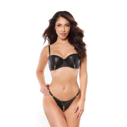 Latexová podprsenka se zdobením v podobě rozepínatelných zlatých zipů je jistě dvouúčelovým modelem, jednak ji můžete nosit každý den jako nevšední komplet spodního prádla a jednak ji lze využít pro speciální úkoly, skvěle se bude hodit pro společné večery a zábavu. Model má vnitřní výztuž, navíc zajištěnou drátkem pod košíčkem pro stabilitu nošení a zamezení efektu posunu podprsenky. Má nastavitelná, neodepínací ramínka a dvouřadé nebo třířadé zapínání na háčky a zlaté doplňky.