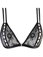 Černá krajková braletka - absolutní bestseller této sezóny, vyrobená ze smyslné průhledné krajky s originálními vzory, nemá žádné výztuhy, střední část košíčku je otevřená a zdobená prvky ve zlaté barvě, aby více sváděla. Model má ve spodní části dvojitá nastavitelná ramínka, obvod podprsenky je také nastavitelný, zapíná se na jeden háček ve zlaté barvě. Materiálové složení: Polyamid 100%