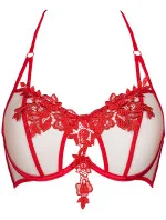 Exkluzivní a fascinující měkká podprsenka V-8861 je avantgardním designem, novinkou v naší nabídce. Lehký a průhledný béžový tyl s červeným vyšívaným motivem zvýrazní krásu vašeho dekoltu. V kompletu s podvazkovým pásem V-8862 a šňůrkami V-8868 vypadá fenomenálně. Podprsenka se zavazuje za krkem. Vzadu má zapínání na háčky a očka. Materiálové složení: 100% polyester