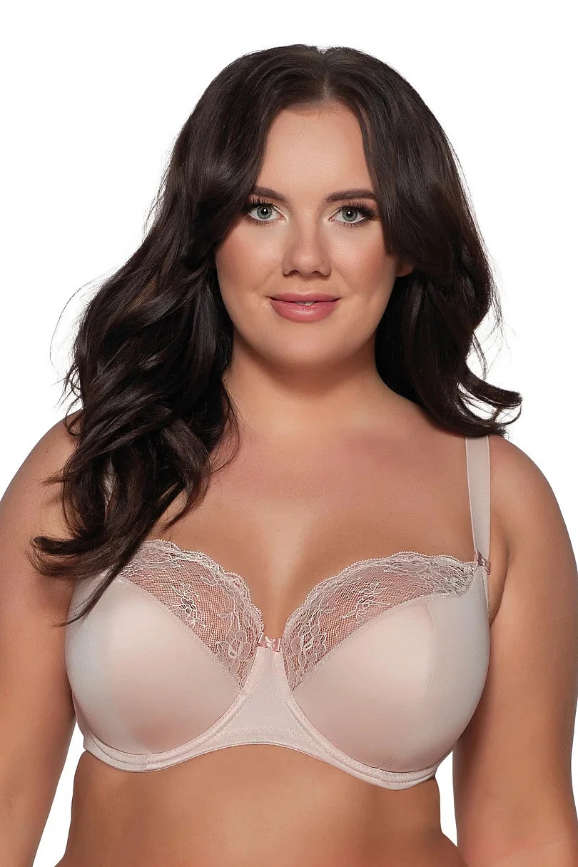 Hladká, elegantní podprsenka s polovyztuženými košíčky, košíčky vyztužené příjemnou pěnou zespodu zvedají a podpírají poprsí a půvabně ho tvarují v dekoltu. Stabilní květinová krajka zdobící horní části košíčků koketně zakrývá horní část ňader a to, co je skryté, ponechává na fantazii. Rafinovaná konstrukce umožňuje podprsence zůstat pevně na svém místě a široký obvod a ramínka zajišťují nejvyšší pohodlí.