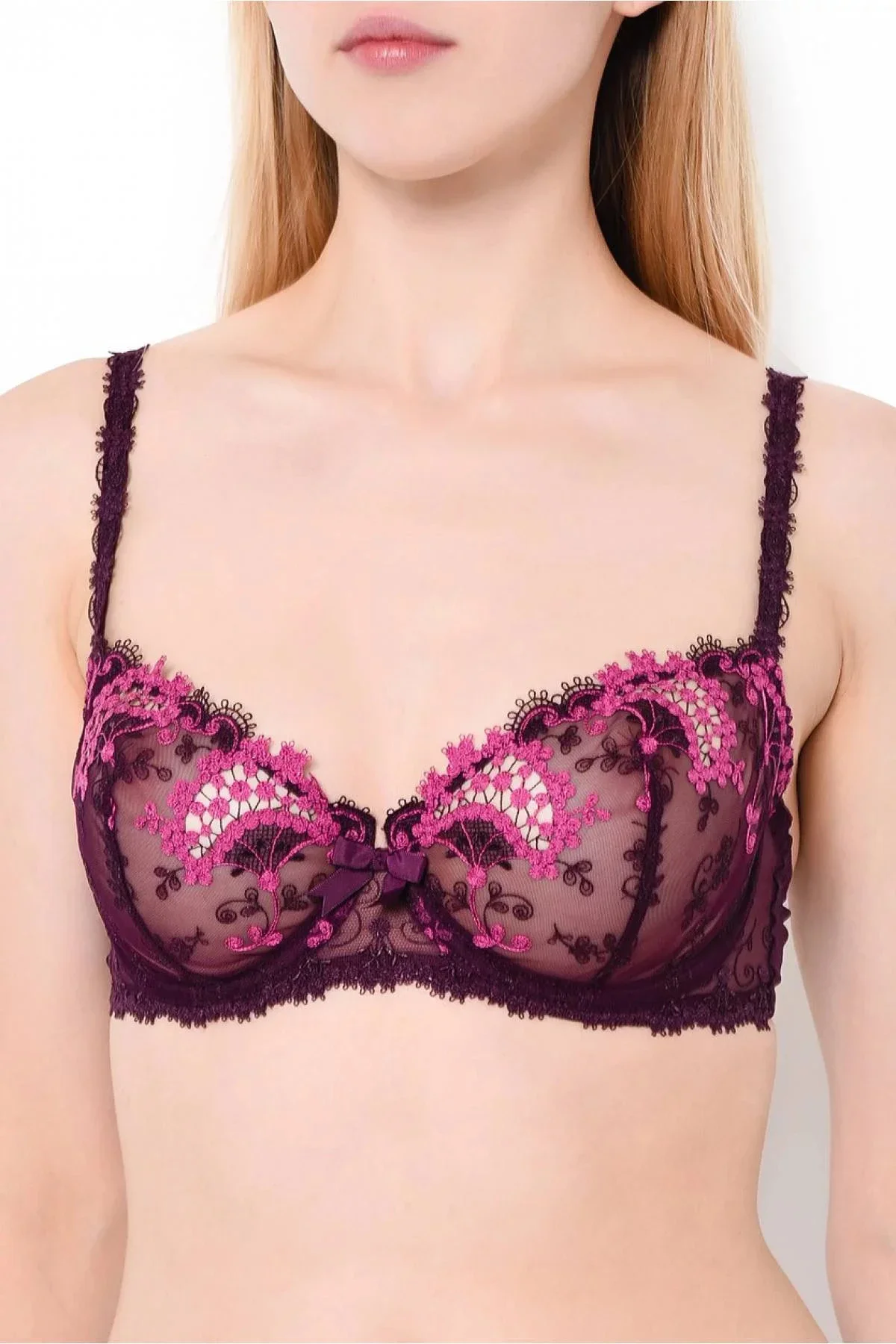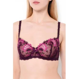Balkónová podprsenka Simone Perélé Wish - košíček je vyroben s překrásné vyšívané krajky, zadní část z jemného italského saténu a ramínka jsou dozdobena výšivkou guipure. Tvar podprsenky udělá plný, zdvižený dekolt.