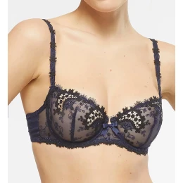 Balkónová podprsenka Simone Perélé Wish - košíček je vyroben s překrásné vyšívané krajky, zadní část z jemného italského saténu a ramínka jsou dozdobena výšivkou guipure. Tvar podprsenky udělá plný, zdvižený dekolt.
