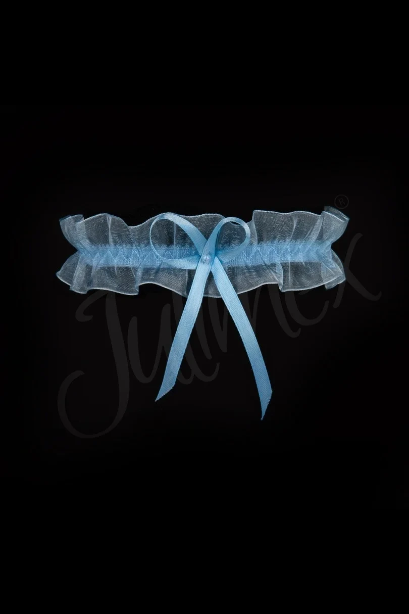 Modrý podvazek PW-02 je klasický, jemný návrh z hladkého tylu, s mašlí a perlovou ozdobou. Ideální na svatbu i mimo ni. Složení: 90 % polyester, 10 % elastan.
