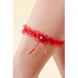 Podwiązka w kolorze czerwieni to idealny dodatek, który kojarzy się z wyjątkowymi okazjami np. studniówka lub wieczór panieński. Świetnie się sprawdzi do sukni wieczorowych. Wykonana z delikatnej warstwy tiulu, której środek zdobi subtelny kwiatek z perełek. Podwiązka nie zsuwa się, jest elastyczna dzięki temu dopasowuje się do uda.