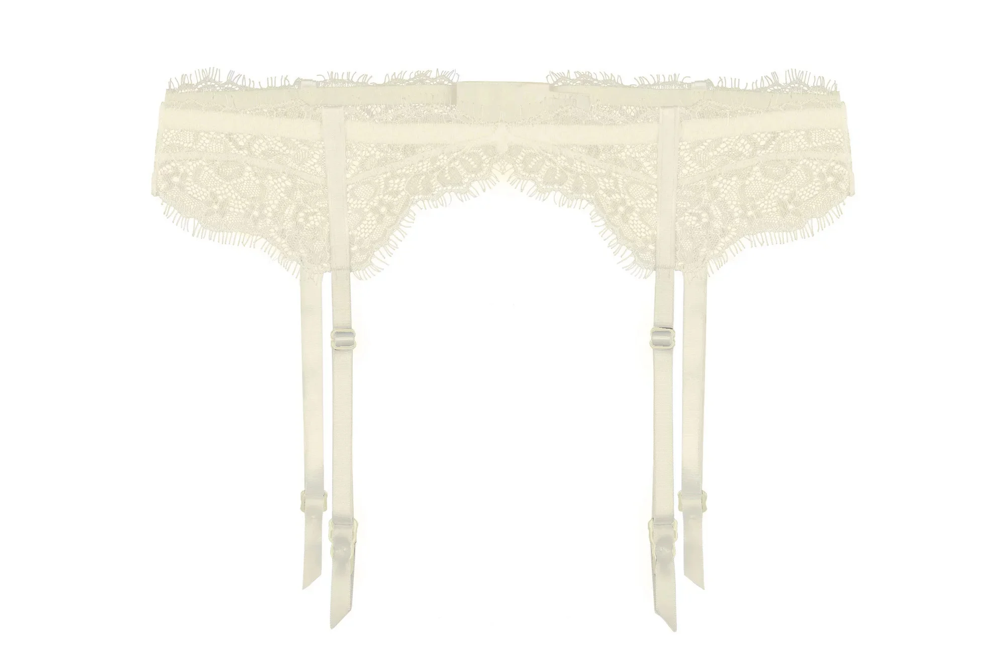 Krajkový podvazkový pás s květovaným motivem. Pásky k punčochám mají regulaci. Okraje krajky jsou zakončené jemnými nitkami. Krásná kombinace romantiky s trochou pikantnosti.
