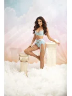 Zajímavý podvazkový pás, který zaujme kombinací modré krajky s květinovým motivem a pásků, které svůdně obepínají pas a boky. Podvazkový pás se zapíná na dvouřadový háček. Materiálové složení: polyamid 85 %, elastan 15 %