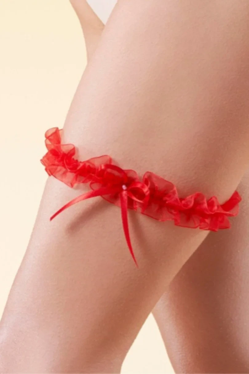 Podvazek Odesa je dokonalý, poměrně úzký model z červeného tylu, zdobený mašlí a jemnou perlou. Přinese štěstí nejen na promoci!