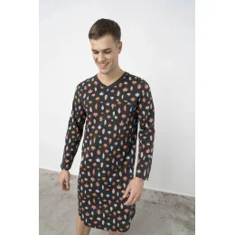 Pohodlná pánská noční košile pro dobrý a zdravý spánek. Tato noční košile je vyrobena z vysoce kvalitní, genetický nemodifikované řecké jersey bavlny, která poskytuje vysoké pohodlí, příjemný pocit na dotek, prodyšnost, pružnost a odolnost.