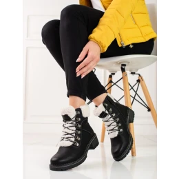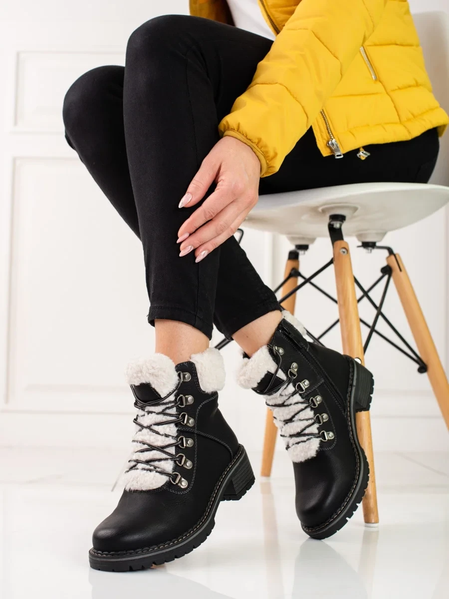 Pohodlné černé dámské kotníčkové boty na plochém podpatku