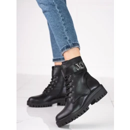 Pohodlné dámské černé kotníčkové boty na plochém podpatku