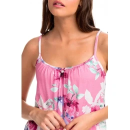 Dvoudílné dámské pyžamo pro pohodlné spaní. Komplet sestává z elegantní košilky s volánky na lemu, kterou doplňují krátké šortky. Set je vyroben z vysoce kvalitního Micro-modalu s příměsí Elastanu. Přírodní Micro-modal poskytuje vyjímečnou měkkost, lehkost a pohodlí, je prodyšný, při praní se nesráží, dobře absorbuje pot a rychle schne, zatímco Elastan dodává oděvu potřebnou pružnost.