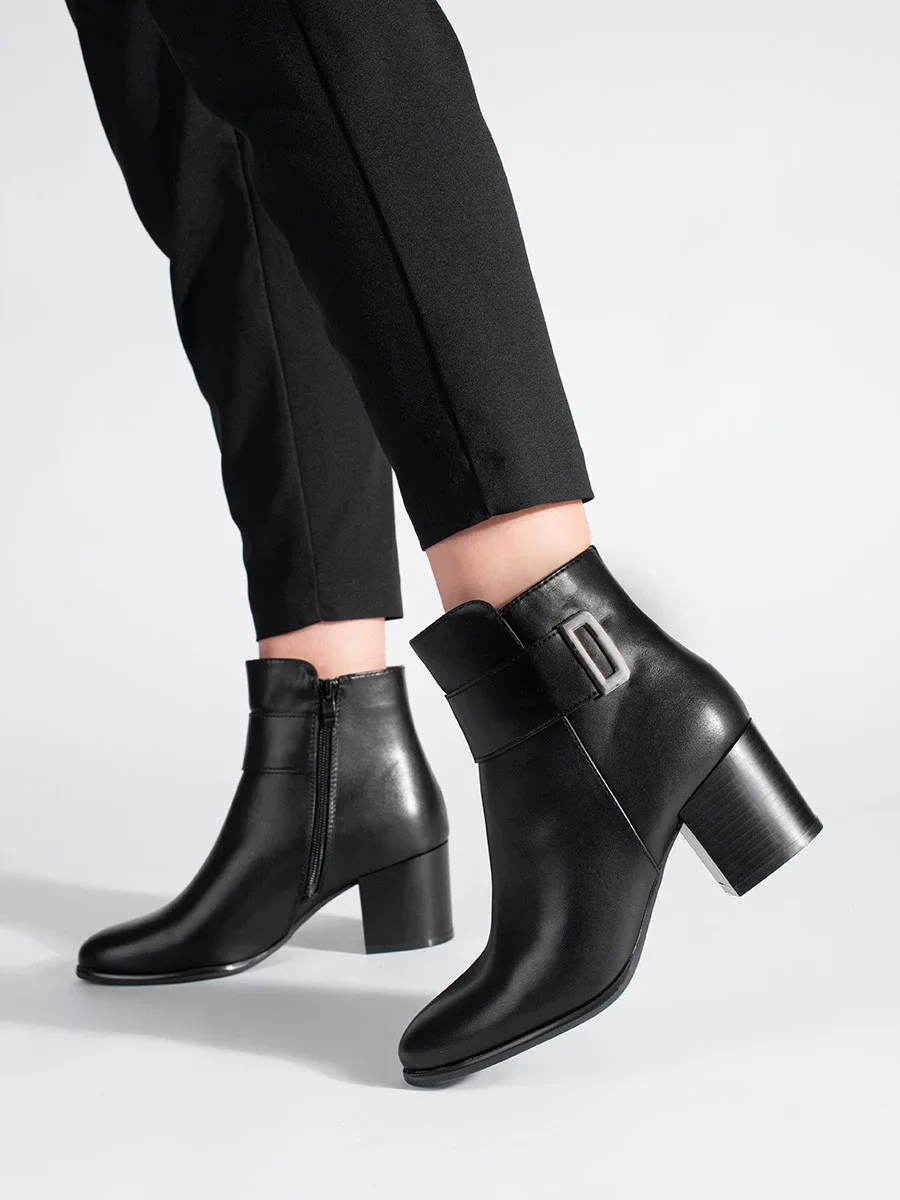 Pohodlné dámské kotníčkové boty černé na širokém podpatku