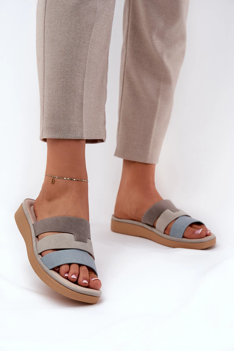 Pohodlné dámské pantofle béžovo-modré Oxena