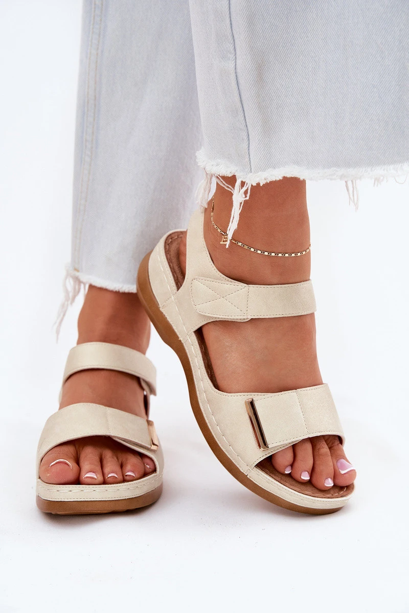 Pohodlné dámské sandály na suchý zip zlaté Iphiope