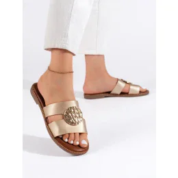 Pohodlné dámské zlaté nazouváky na plochém podpatku