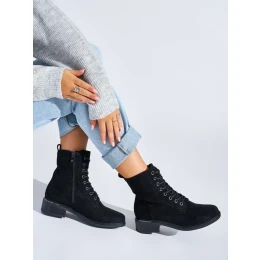 Pohodlné kotníčkové boty dámské černé na širokém podpatku