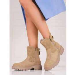 Pohodlné kotníčkové boty hnědé dámské na plochém podpatku
