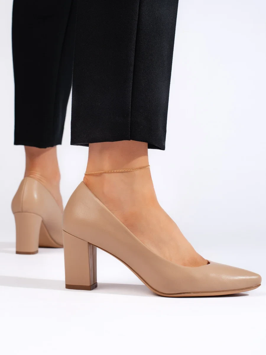 Pohodlné lodičky dámské hnědé na širokém podpatku