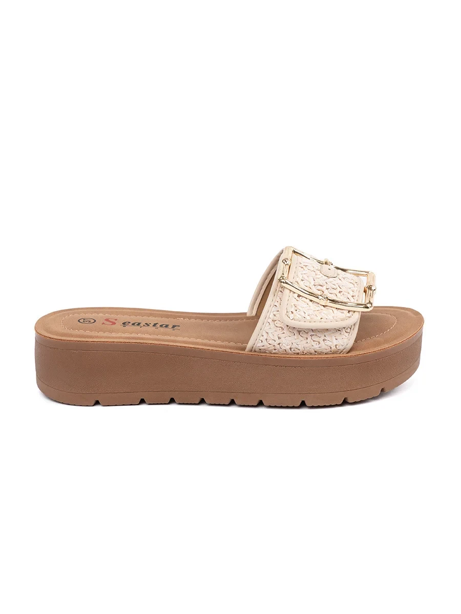 Pohodlné nazouváky dámské Jasnobeżowy platforma