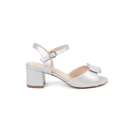 Pohodlné stříbrné sandály dámské na širokém podpatku