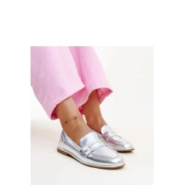 Stříbrné klasické mokasíny Nasia jsou nezbytnou součástí každého šatníku! Jejich moderní design s mandlovou špičkou zajišťuje, že nejen vypadají elegantně, ale jsou také neuvěřitelně pohodlné. Vyrobené z vysoce kvalitní gumy, jsou lehké a snadno se obouvají, což je činí ideálními na každý den. Kromě toho, kovový odstín jim dodává trochu lesku, dělá je tak skvělým doplňkem každého outfitu. Vnější materiál: Ekologická kůže Zateplení: Žádné Materiál podešve: Guma Barva podešve: Hnědá Zapínání: Nazouvání Kolekce: Jaro/Léto