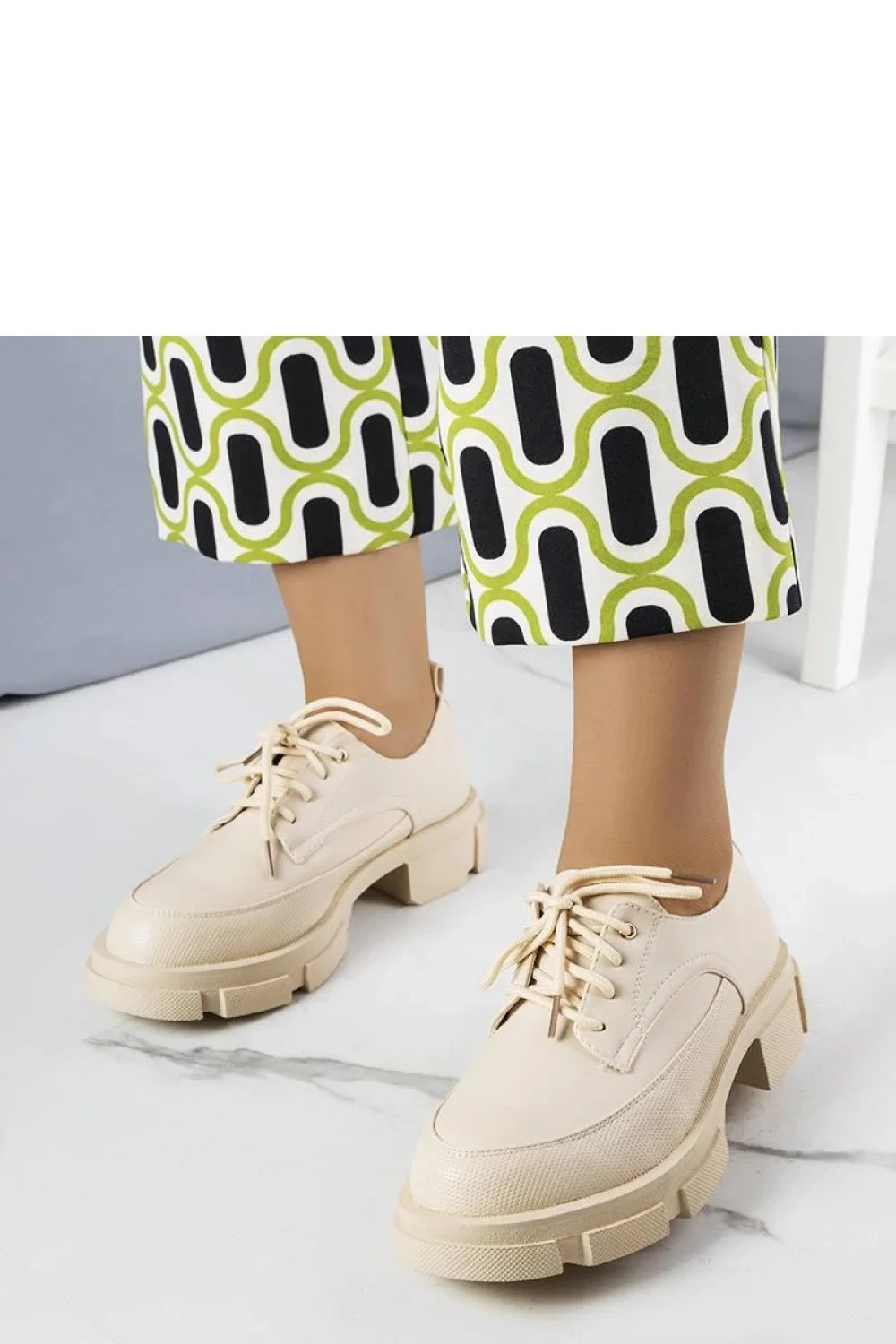 Béžové polobotky na masivní podrážce Kay jsou ideální obuv pro každou módní ženu. Mají traktorovou podrážku s čtvercovým podpatkem, nízkým nártovým lemem a krátké šněrování vpředu. Mají také kulatou špičku a minimalistické prošívání, co jim dodává moderní vzhled. Jsou vyrobeny z ekologické kůže, což znamená, že nejsou jen stylové, ale také šetrné k životnímu prostředí. Skvěle se hodí k halence s dekorativními řetízky a kožené sukní. Velikost je standardní, takže se vyplatí vybrat svou běžnou velikost. Vnější materiál je ekologická kůže a podrážka je vyrobena z béžové gumy. Jedná se o obuv ze letní kolekce, která dodá svěžest a styl každé letní stylizaci.
