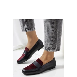 Elegantní dámské polobotky Kolk Mokasíny v černo-bordó barvě budou skvělým doplňkem každé dámské stylizace. Vyrobeny z vysoce kvalitní ekologické kůže, poskytují pohodlí díky kožené vložce. Standardní numerace usnadňuje výběr správné velikosti. Boty mají zapínání na zatloukání a podrážka je vyrobena z odolné gumy v černé barvě. Ideální na letní dny, nemají žádné vyztužení. Originální design a vysoká kvalita provedení zajistí, že budete vypadat výjimečně!