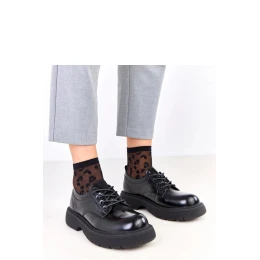 Polobotky na platformě jsou moderním spojením stylu a pohodlí. Vyrobené z vysoce kvalitní ekologické kůže, elegantně a nadčasově vypadají, skvěle doplňují každodenní i výraznější styling. Model má kulatý špičák a stabilní platformu o výšce 4 cm, která opticky zjemňuje postavu a poskytuje pohodlí při chůzi po celý den. Šněrování zaručuje ideální přizpůsobení k noze, a vložka z přírodní kůže zvyšuje pohodlí a prodyšnost. Stylové, univerzální a pohodlné tyto polobotky jsou skvělou volbou pro ženy, které oceňují moderní design a pohodlí každý den.
