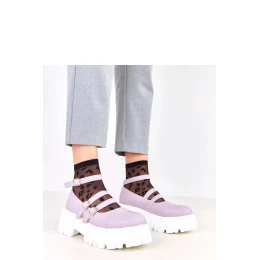 Polobotky na traktorovej podrážke sú ponukou pre ženy, ktoré oceňujú odvážny štýl a pohodlie. Vyrobené z vysokokvalitnej ekologickej kože, vynikajú moderným dizajnom a pevným spracovaním. Model má štvorcový špičiak a masívnu platformu s výškou 6 cm, ktorá pridáva postave charakter a stabilitu. Tri efektné spony slúžia ako praktické zavretie, ale aj štýlový akcent. Vnútro topánky je vybavené vložkou z prírodnej kože, zabezpečujúcou pohodlie a primeranú cirkuláciu vzduchu. Sú to štýlové polobotky, ktoré skvele doplnia jak každodenné, tak aj výrazné, módne štýlové kombinácie.