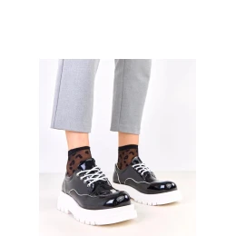 Lakýrované polobotky na masivní platformě jsou stylovou kombinací elegance a moderního charakteru. Vyrobené z vysoké kvality ekologické kůže s efektním, lesklým povrchem, přitahují pohled a dodávají každému outfitu módní výraz. Model se vyznačuje čtvercovým špičatým nosem a stabilní platformou o výšce 3,5 cm, která zajišťuje pohodlí a lehce zdůrazňuje postavu. Šněrování umožňuje ideální přizpůsobení noze, a vložka z přírodní kůže zaručuje pohodlí a dostatečnou prodyšnost po celý den. Jedná se o skvělou volbu pro ženy, které ocení eleganci v moderním provedení, ideální jak do kanceláře, tak do každodenních městských outfitů.