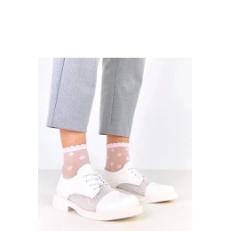 Polobotky se šněrováním a ozdobnou síťovou vložkou na svršku jsou stylovou kombinací klasiky a moderního designu. Vyrobené z kvalitní ekologické kůže, vynikají kulatou špičkou a módním detailem ve formě síťové vložky, která dodává lehkost a původní charakter. Model je umístěn na nízkém, stabilním podpatku o výšce 3 cm, což zajišťuje pohodlí při každodenním nošení. Šněrování umožňuje ideální přizpůsobení noze, a vložka z přírodní kůže zaručuje pohodlí a prodyšnost po celý den. Jsou to jedinečné polobotky, které se skvěle hodí do moderních městských stylizací, ideální jak do práce, tak na každý den.