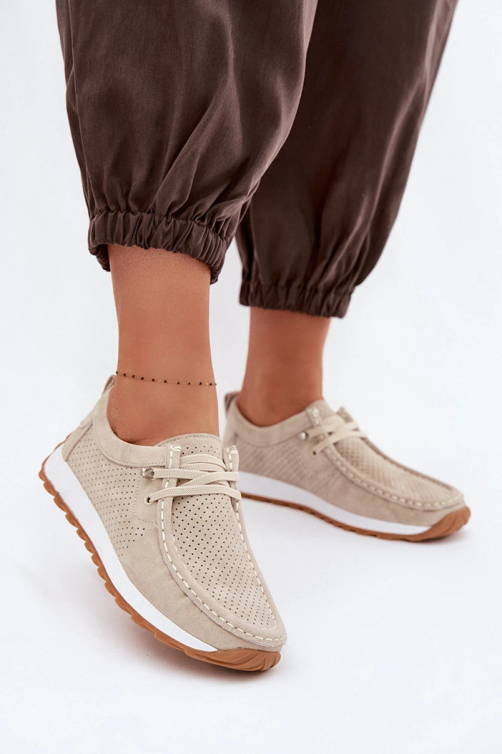 Dámské polobotky vyrobené z přírodního semiše jsou pohodlným a stylovým návrhem na každý den. Světlé díry na svršku dodávají obuvi lehkost a zajišťují lepší prodyšnost, co se osvědčí zejména v teplejších dnech. Model je vybaven elastickými gumičkami imitujícími šněrování, které usnadňují obouvání a umožňují dobré přizpůsobení k noze. Vnitřek boty doplňuje měkká stélka typu Comfort Shoes, zvyšující pohodlí i při dlouhém nošení. Boty jsou lehké a pohodlné, díky čemuž se skvěle hodí do každodenního užívání. Ideální volba pro ženy, které ocení kombinaci pohodlí a módního vzhledu.