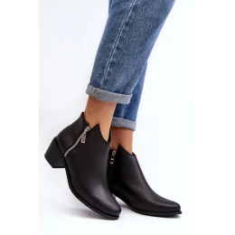 Dámské boty z přírodní kůže. Zateplené uvnitř pomocí deky na boty. Podpatek ve tvaru nízkého sloupku. Svršek mírně za kotníkem se zipy. Vyztužená pata zajišťuje stabilizaci chodidla. Mandlová špička. Tento klasický střih by neměl chybět ve vašem šatníku!
