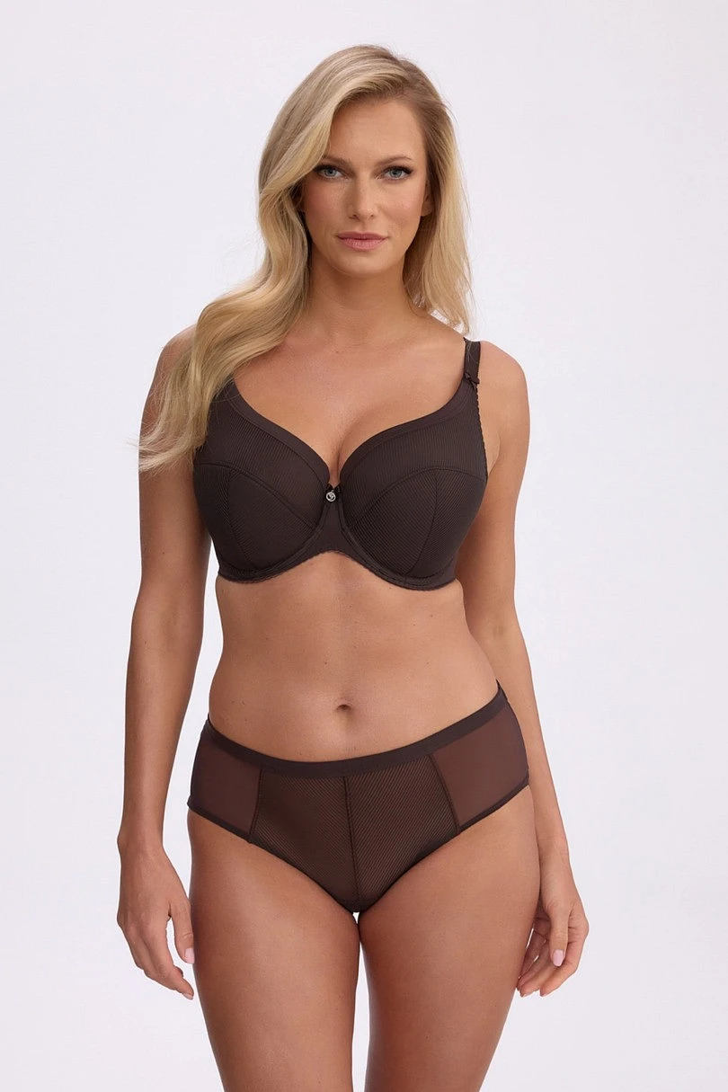 Polovyztužená podprsenka Sonia 1058 v hnědé barvě je kombinací pohodlí, stabilní opory a nadčasové elegance. Tento model byl navržen pro ženy, které očekávají pohodlí po celý den a zároveň chtějí zdůraznit přirozený, krásný tvar svých prsou. Košíčky byly prodlouženy až k ramínkům, takže podprsenka dobře sbírá prsa, modeluje je a dodává jim plnější, kulatý vzhled.