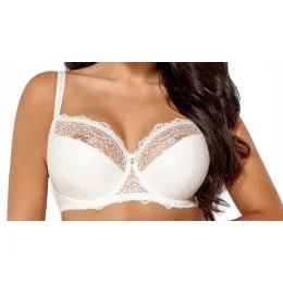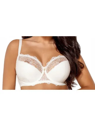 Tato fenomenální podprsenka typu semi-soft krásně zvýrazňuje ženské tvary a současně nadnáší poprsí a je zárukou maximálního pohodlí při nošení. Podprsenka je vyrobená ze světlé látky a z jemné výšivky. Spodní část košíčků je vyztužená pěnou. Boční kostice pomáhají podprsenku vypasovat a udržet ji na správném místě. Model je ideální pro každodenní nošení. Podprsenka je k dostání také ve velikostech maxi. Komplet je možné vytvořit s klasickými kalhotkami, nebo s kalhotkami string.