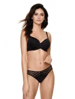 Svůdná, hladká podprsenka, která jemně tvaruje a pozvedá poprsí. Bezešvé, prodyšné košíčky tvarované za tepla. Zadní část podprsenky je celá z krajky s vodorovnými pruhy, zevnitř vyztužená tylem. Nastavitelné popruhy, neodnímatelné. Svislé velrybí kosti po stranách zabraňují bočnímu rýhování.
