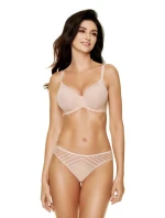 Svůdná, hladká podprsenka, která jemně tvaruje a pozvedá poprsí. Bezešvé, prodyšné košíčky tvarované za tepla. Zadní část podprsenky je celá z krajky s vodorovnými pruhy, zevnitř vyztužená tylem. Nastavitelné popruhy, neodnímatelné. Svislé velrybí kosti po stranách zabraňují bočnímu rýhování.