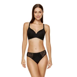Klasická podprsenka v univerzální barvě, která je dokonalým doplňkem každého šatníku na spodní prádlo. Podprsenka s hladkými termo modelovanými košíčky jemně nadnáší poprsí. Bezešvé, prodyšné košíčky ve stylu walk-style zdobí krajka na bocích. Zadní díl je vyrobený z tylu a krajky. Podprsenka byla navržena a ušita v Polsku.