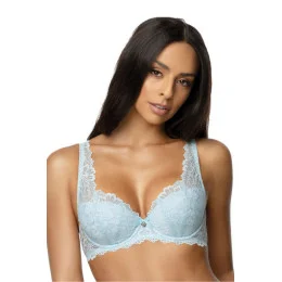 Úžasný podprsenka Carmela. Krásně vypadá na každém poprsí. Celý vyroben z jemné krajkové látky v modré barvě, která se sexy skládá na hrudníku a stoupá po ramínku nahoru. Ramínka jsou nastavitelná, neodnímatelná. Zavírání na dva řady s trojstupňovým nastavením.