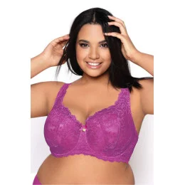 Fenomenální velká podprsenka Carmela. K dispozici ve velkých velikostech. Krásně zvýrazňuje dekolt, dokonale stahuje poprsí. Díky širokému ozdobnému ramínku umožňuje zakrýt asymetrii prsou. Košíčky jsou vyrobené z jemné purpurové krajky, která sexy obepíná ňadra a jemně se plazí po ramínku. Tvarované košíčky jsou posazené na krajkové kostici a krajkových zádech, která jsou zpevněná elastickou síťovinou. Ramínka jsou nastavitelná, neodnímatelná. Dvouřadé zapínání na háčky a očka s třístupňovým nastavením.