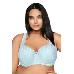 Fenomenální velká podprsenka Carmela. K dispozici ve velkých velikostech. Krásně zvýrazňuje dekolt, dokonale stahuje poprsí. Díky širokému ozdobnému ramínku umožňuje zakrýt asymetrii prsou. Košíčky jsou vyrobené z jemné modré krajky, která sexy obepíná ňadra a jemně se plazí po ramínku. Tvarované košíčky jsou posazené na krajkovém kosticovém kosticovém pásku a krajkové zadní části, která byla vyztužena elastickou síťovinou. Ramínka jsou nastavitelná, neodnímatelná. Dvouřadé zapínání na háčky a očka s třístupňovým nastavením.