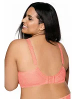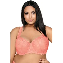 Fenomenální velká podprsenka Carmela. K dispozici ve velkých velikostech. Krásně zvýrazňuje dekolt, dokonale stahuje poprsí. Díky širokému ozdobnému ramínku umožňuje zakrýt asymetrii prsou. Košíčky jsou vyrobené z jemné broskvové krajky, která sexy obepíná ňadra a jemně se plazí po ramínku. Tvarované košíčky jsou posazené na krajkovém kosticovém kosticovém pásku a krajkové zadní části, která byla vyztužena elastickou síťovinou. Ramínka jsou nastavitelná, neodnímatelná. Dvouřadé zapínání na háčky a očka s třístupňovým nastavením.