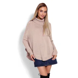 Pončo se zaobleným spodním okrajem. Rolák. Pletený vzor na rukávech. Pončo s originálním střihem. Pečlivé zpracování.