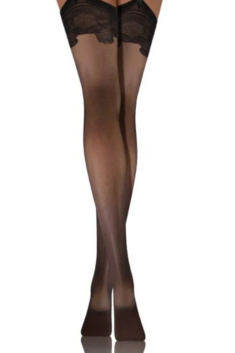 Dámské punčochy z pletené elastanové příze, matné, s ozdobným lemem na horní straně.